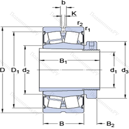 Сферические роликоподшипники на закрепительной втулке BS2-2224-2CS5K/VT143 + H 2324 EH у которого конструкционной особенностью являются ролики в форме конуса и разъемный корпус. Изделие также может быть укомплектовано наружным кольцом с упорным бортиком или большим углом, двухрядными или четырехрядными роликоподшипниками, утолщенной внешней шиной.
