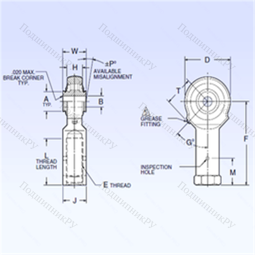 Размер (B) - 6,35 мм.