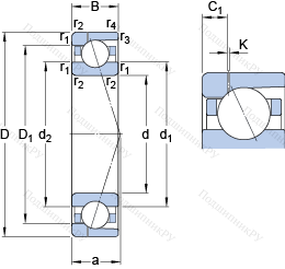 | Номинальная статическая грузоподъёмность | C0 | 45.5 | kN | |