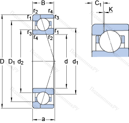 | Номинальная динамическая грузоподъёмность | C | 21.2 | kN | |